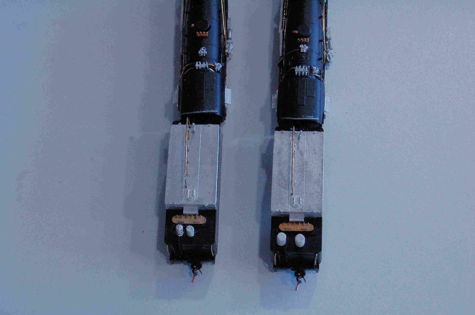 Closeup overhead view of the CB&Q 0-4 tenders showing all the GHQ detail parts added