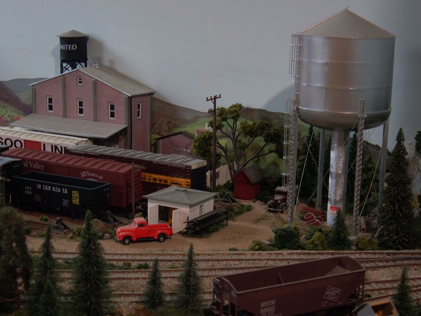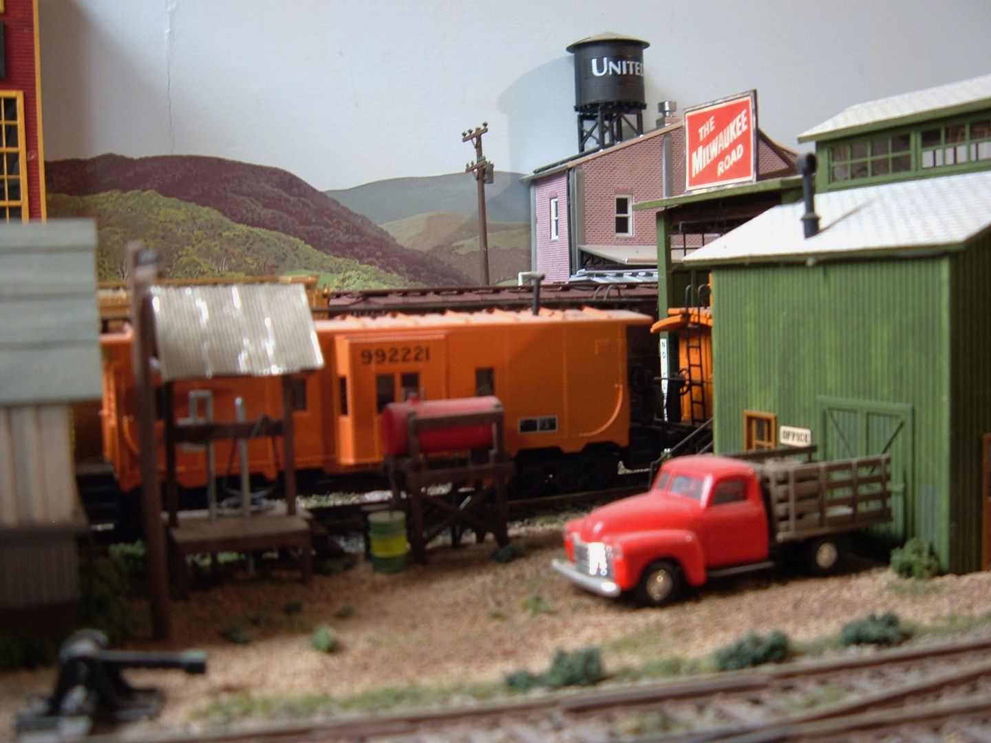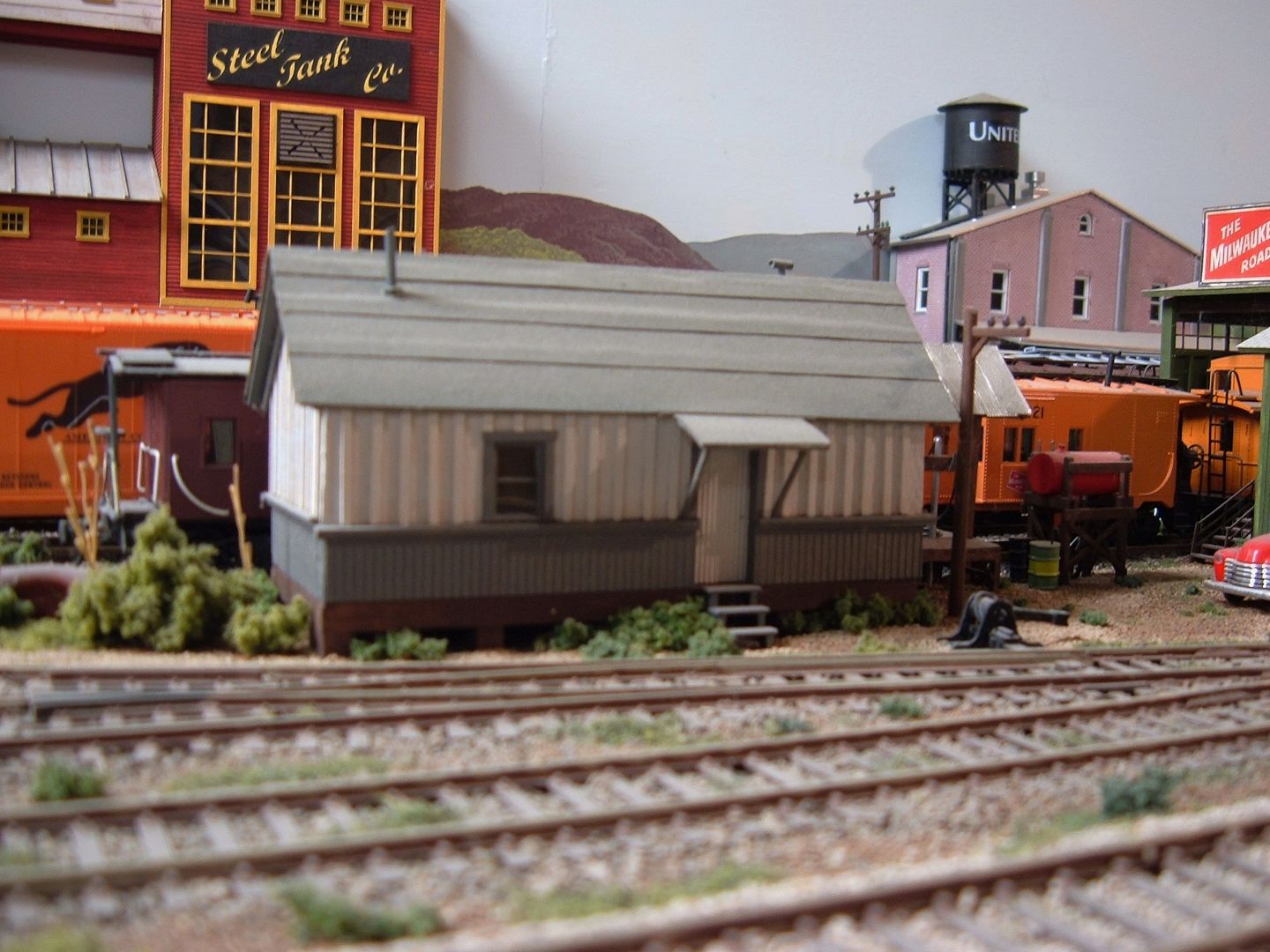 I started the layout in the rail yard in Portage Wis. The section is 2' wide and 14' long and took a little over 2 years to build. It is also in another room from the main layout. The majority of the structures are scratchbuilt with a few kits. the first pic's are of the south end of the yard.