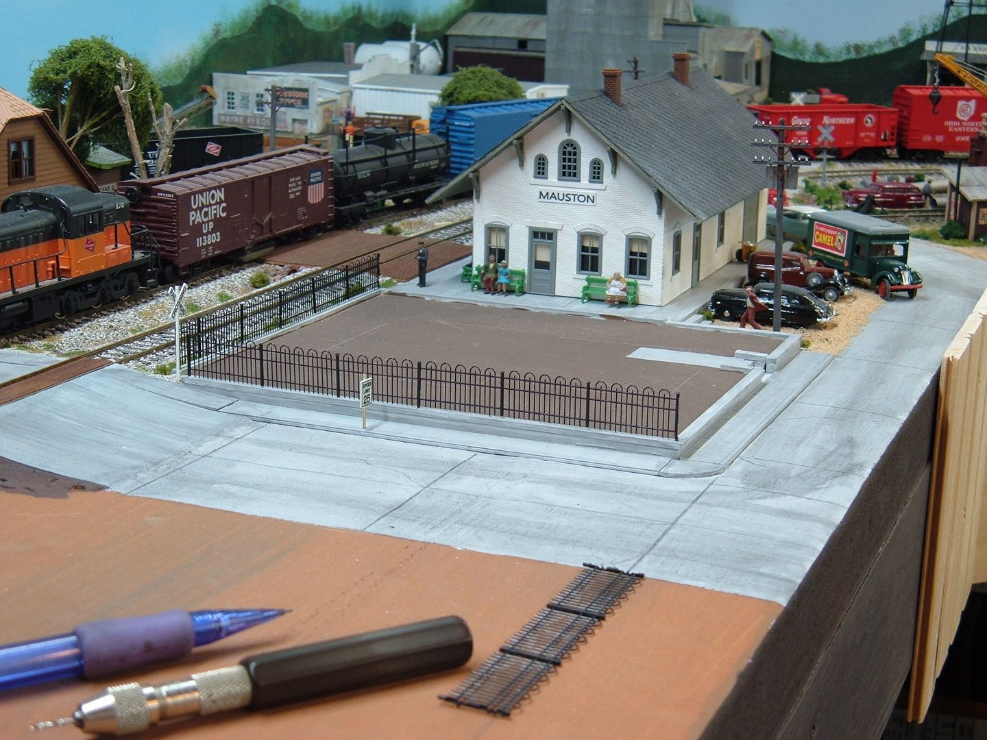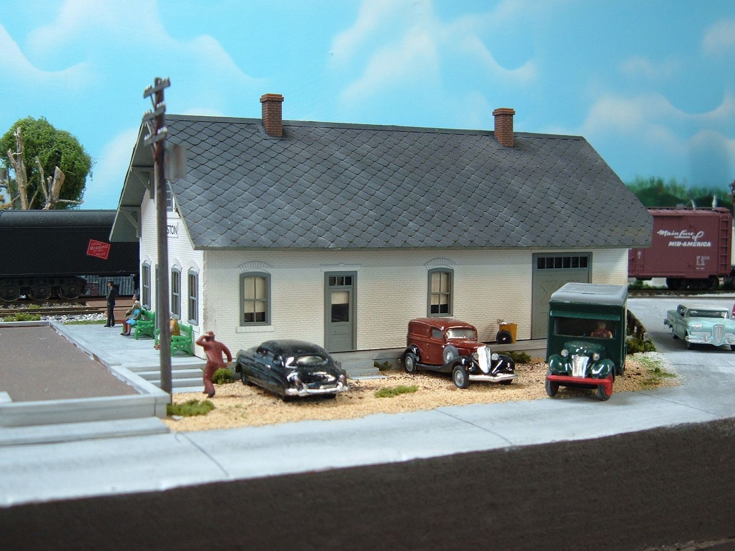 The station looks great installed on your layout. Like where it's installed there by the curved track...neat photo !  8)