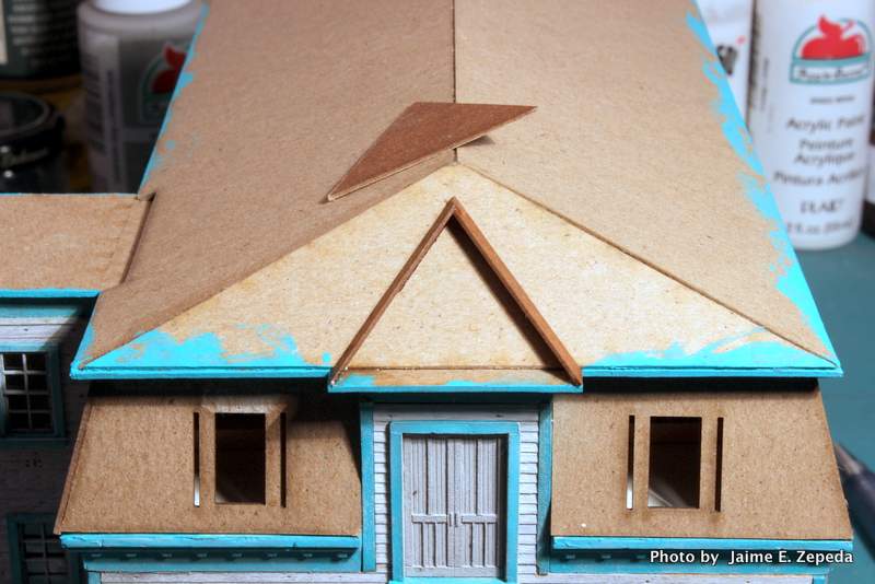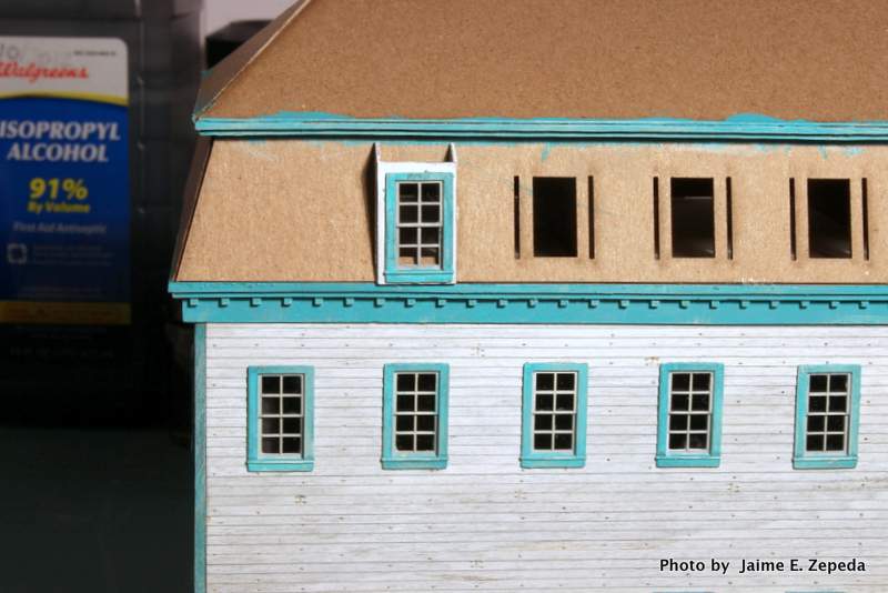 I was not happy with it. The window openings took the paint well. The dormer sides did not take the paint so well. It was very cold outside when I sprayed these. I don't have a spray booth so I have to spray paint stuff out in my back yard. Anyway, I proceeded on.