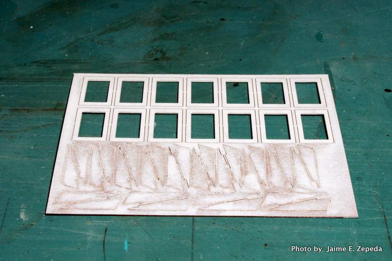 I don't have much experience with laserboard. Thus, I followed the instructions as best I could. The instructions direct the modeler to spray paint the dormer laserboard parts with white. I did that. Here is the result: