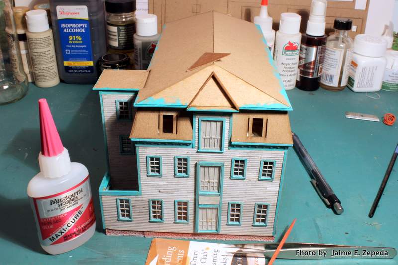 I did question the order in which the roof is getting built. Normally I'd have chosen to shingle the roof prior to gluing it to the building. But, that is because I've been influenced by how other kit makers suggest building their kits. I guess there may not be a right and wrong way.