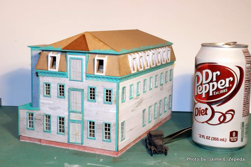 I placed a Jordan pick-up truck and a can of diet soda (Lisa's) next to the building to give it some perspective.